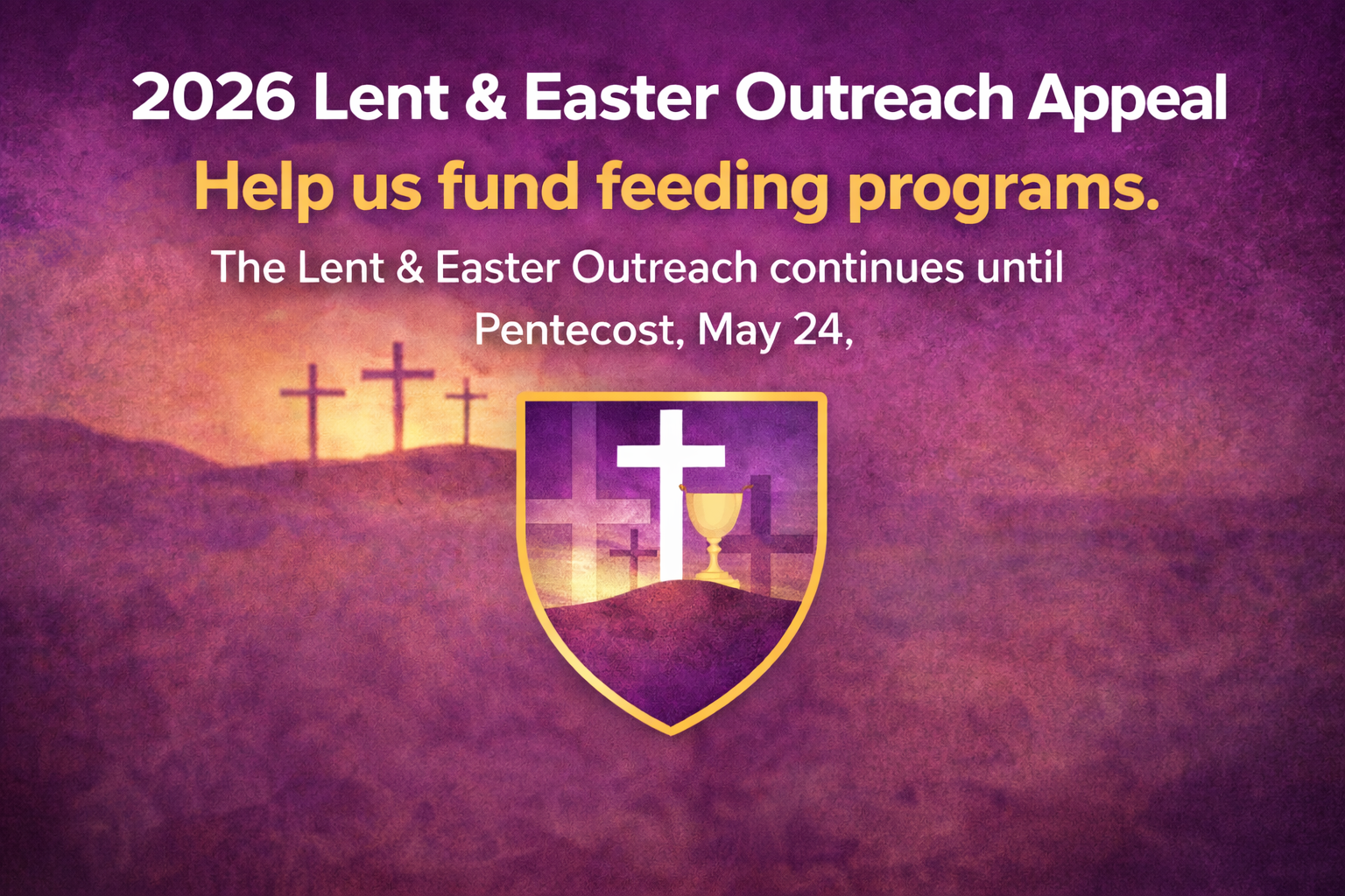 Our 2026 Lent & Easter Outreach Appeal kicks off the Third Sunday in Lent, March 8, and continues throughout Lent & Eastertide until the Day of Pentecost, May 24, 2026.